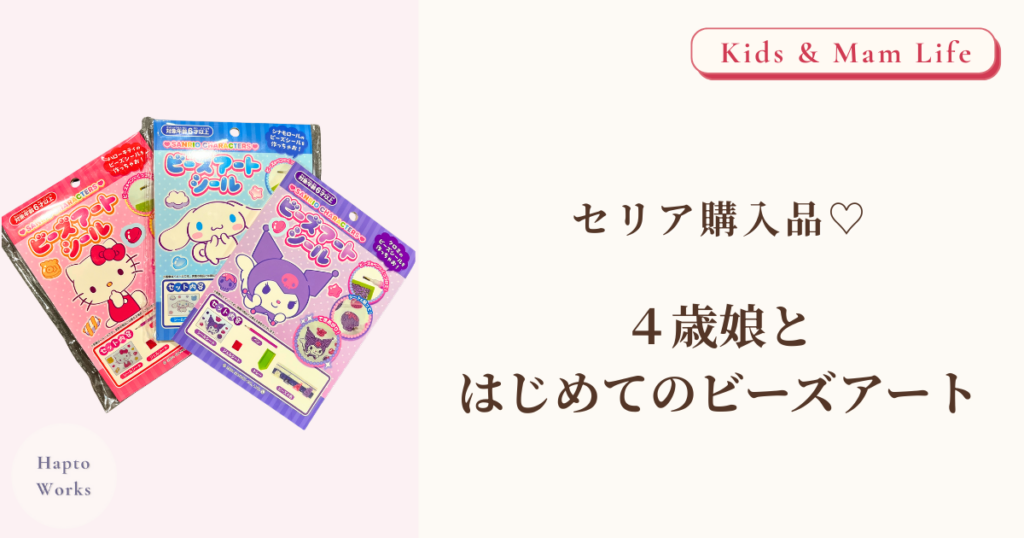 ※この記事にはアフィリエイトリンクが含まれています。 猛暑で日中の外遊びができなくなった夏…。4歳の娘はおままごと全盛期で、私は毎日“相手役”としてフル稼働。母、ついに限界——。そんな私を救ってくれたのが、セリアで見つけたサンリオのビーズアート...